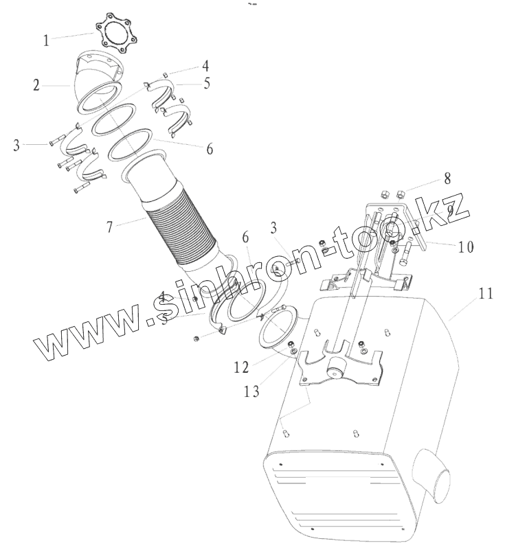 Каталог запасных частей к технике: Shaanxi Shacman F3000. EXHAUSTING AND MUFFLER F2000 (WD12)