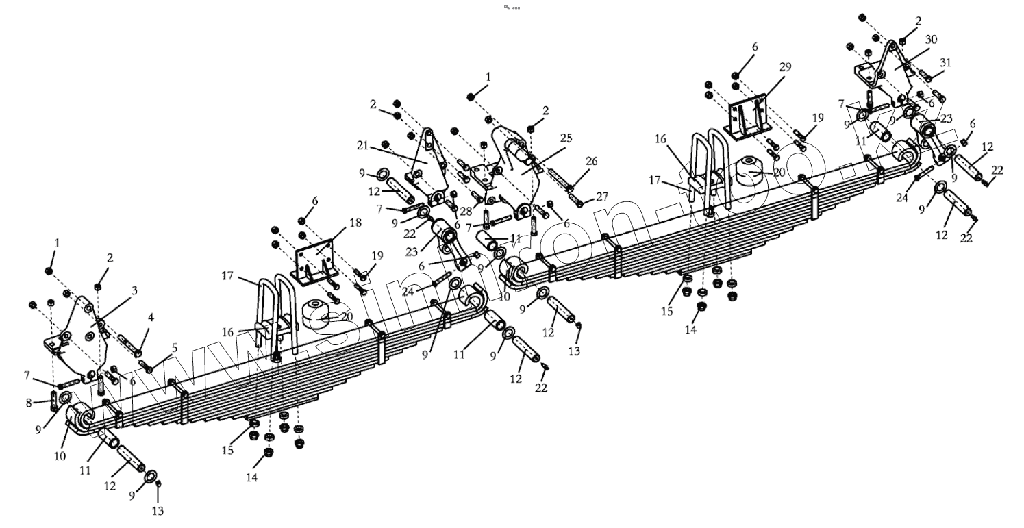 Каталог запасных частей к технике: Shaanxi Shacman F3000. FRONT SUSPENSION (DC93319690501) DUMP TRUCK 8X4