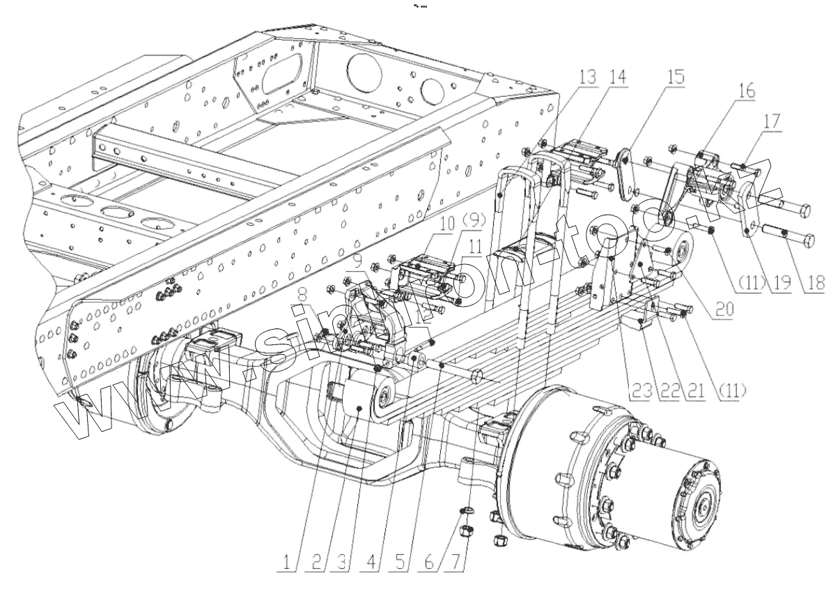 Каталог запасных частей к технике: Shaanxi Shacman F3000. REAR SUSPENSION (DC95189520507)