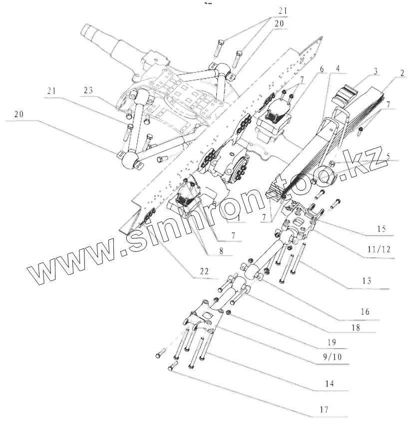 Каталог запасных частей к технике: Shaanxi Shacman F3000. TRACTOR REAR SUSPENSION 6X4