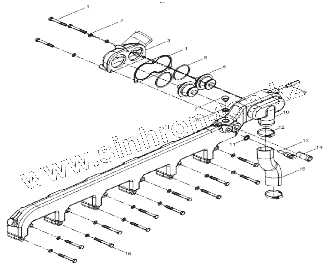 Каталог запасных частей к технике: Shaanxi Shacman F3000. WATER OUTLET PIPE GROUP (02)