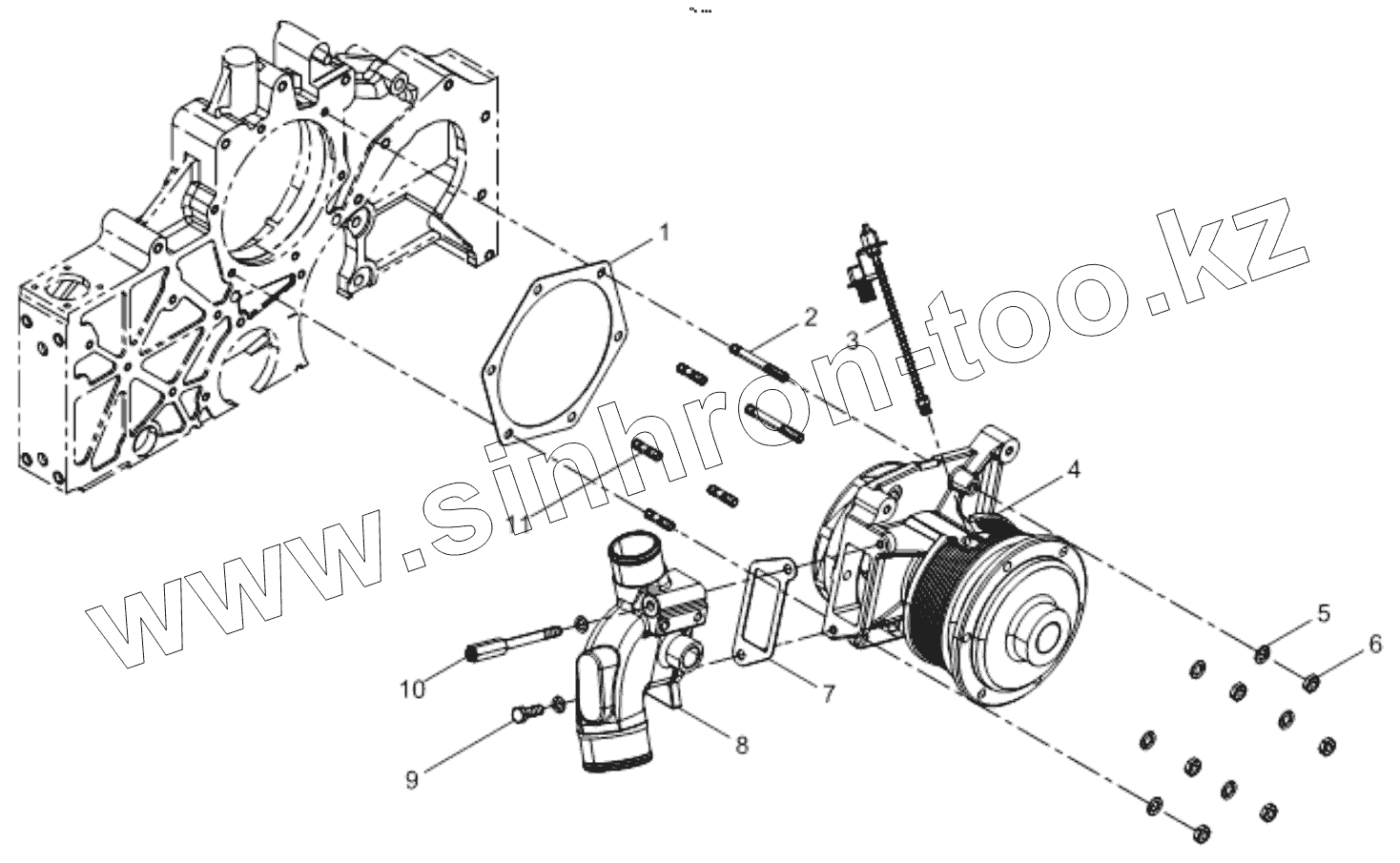 Каталог запасных частей к технике: Shaanxi Shacman F3000. WATER PUMP ASSEMBLY (02)