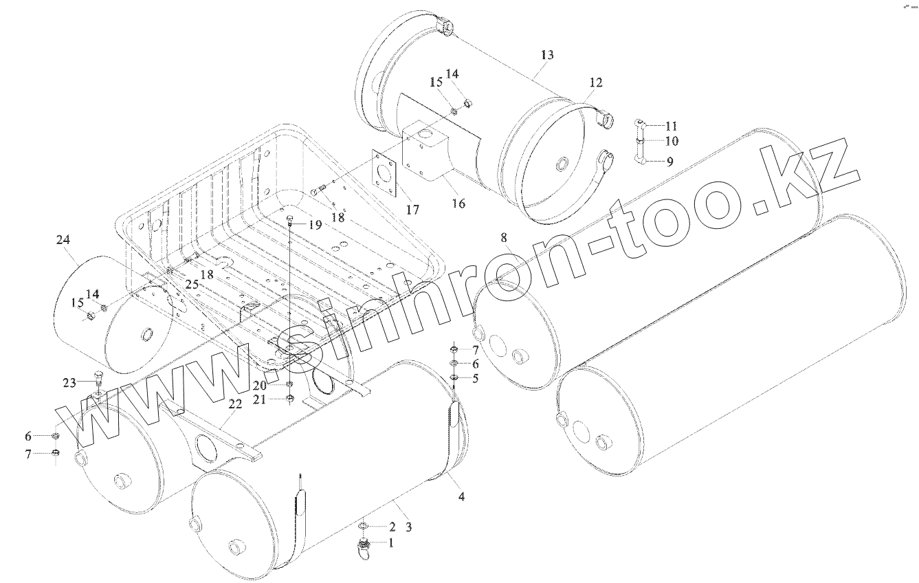 Каталог запасных частей к технике: Shaanxi Shacman SX3255DR385. AIR TANK FIXING