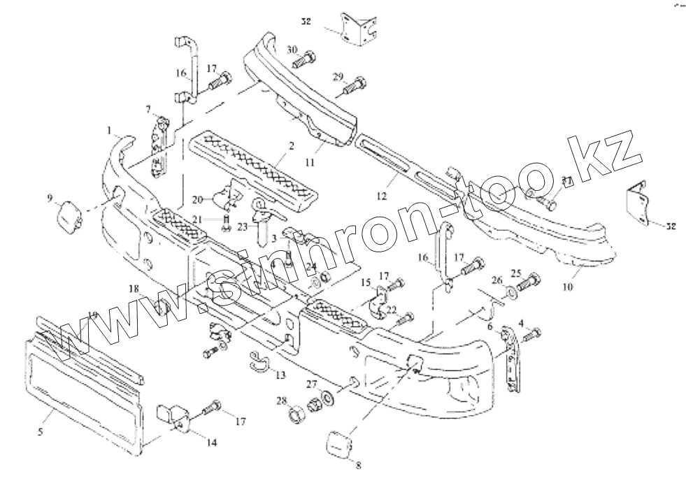 Каталог запасных частей к технике: Shaanxi Shacman SX3255DR385. BUMPER AND FRONT BRACKET