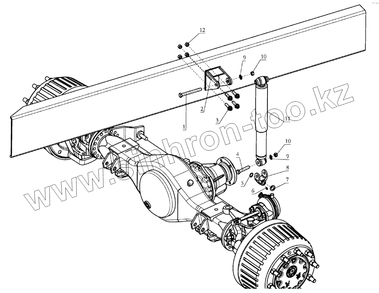 Каталог запасных частей к технике: Shaanxi Shacman SX3255DR385. FRONT SHOCK ABSORBER (DC93259680110)
