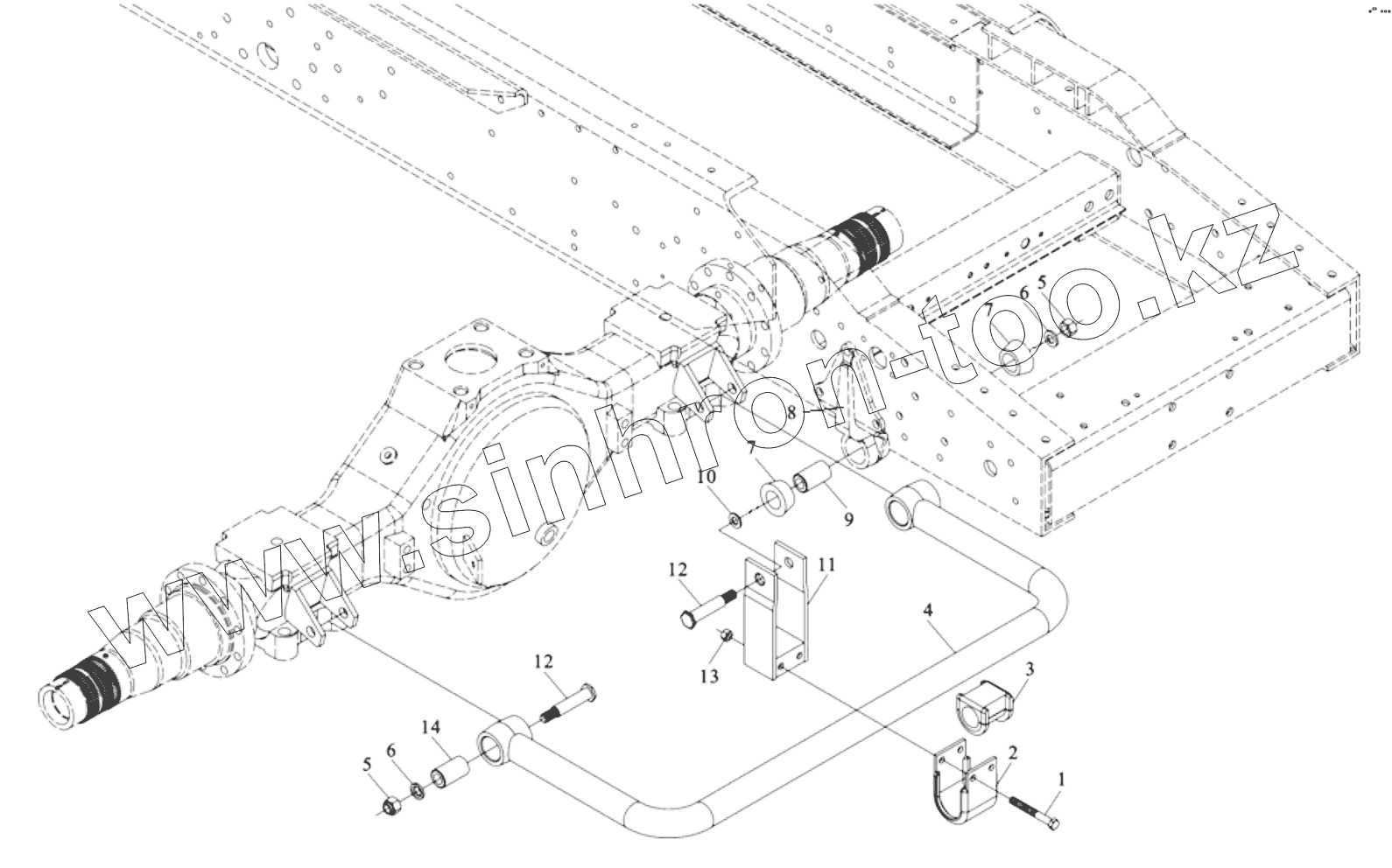 Каталог запасных частей к технике: Shaanxi Shacman SX3255DR385. REAR STABILIZER ASSY (DC93259680110)