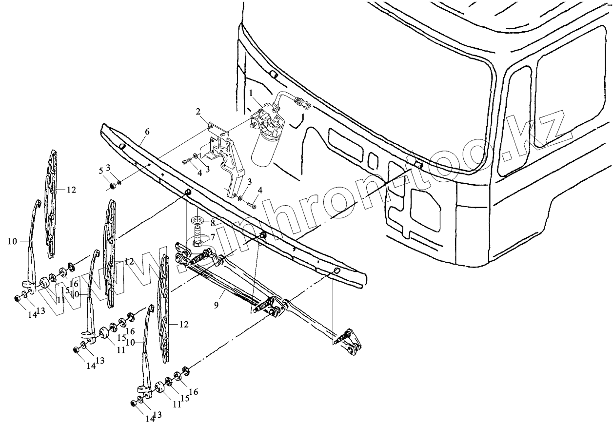 Каталог запасных частей к технике: Shaanxi Shacman SX3255DR385. WIPER SYSTEM