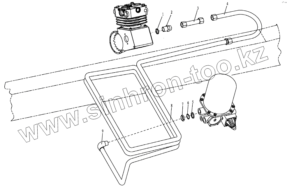 Каталог запасных частей к технике: Shaanxi Shacman SX3256DR384 (F3000). AIR COMPESSOR OUTER LINE