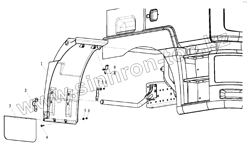 Каталог запасных частей к технике: Shaanxi Shacman SX3256DR384 (F3000). FENDER RIGHT BEHIND CAB