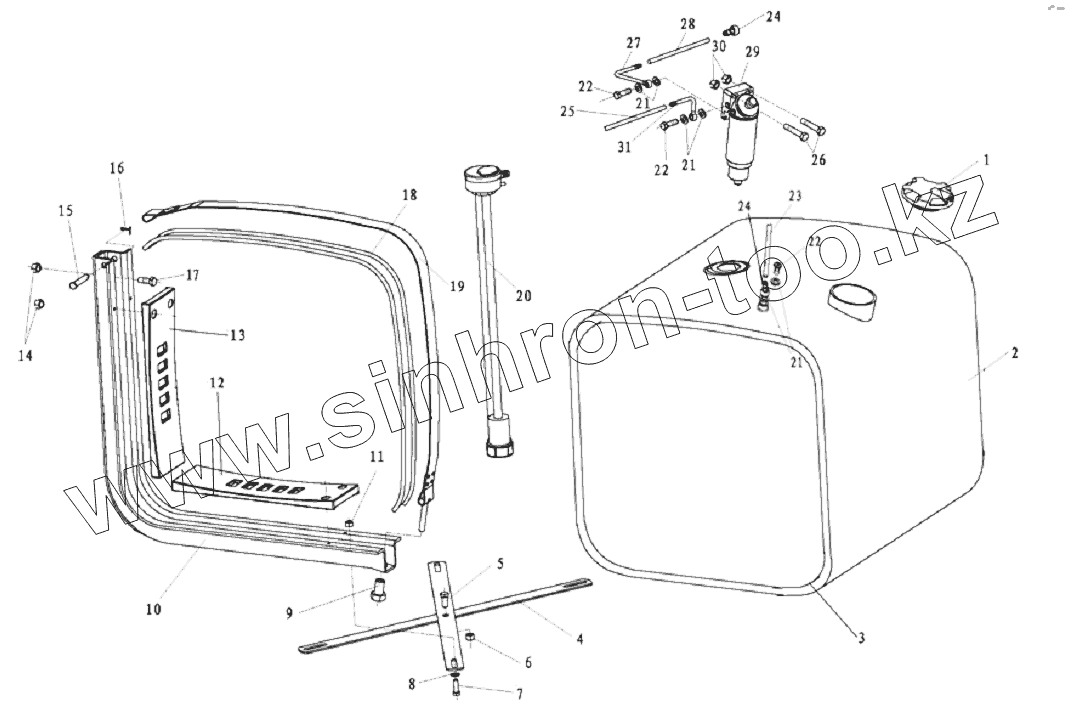 Каталог запасных частей к технике: Shaanxi Shacman SX3256DR384 (F3000). FUEL TANK ASSEMBLY 380L