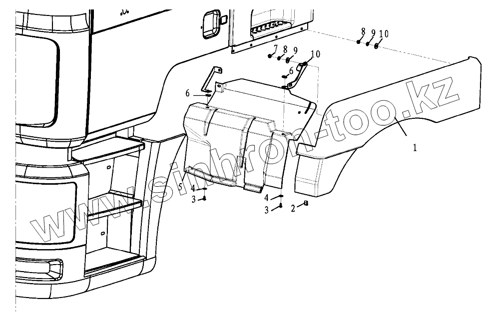 Каталог запасных частей к технике: Shaanxi Shacman SX3256DR384 (F3000). LEFT FENDER