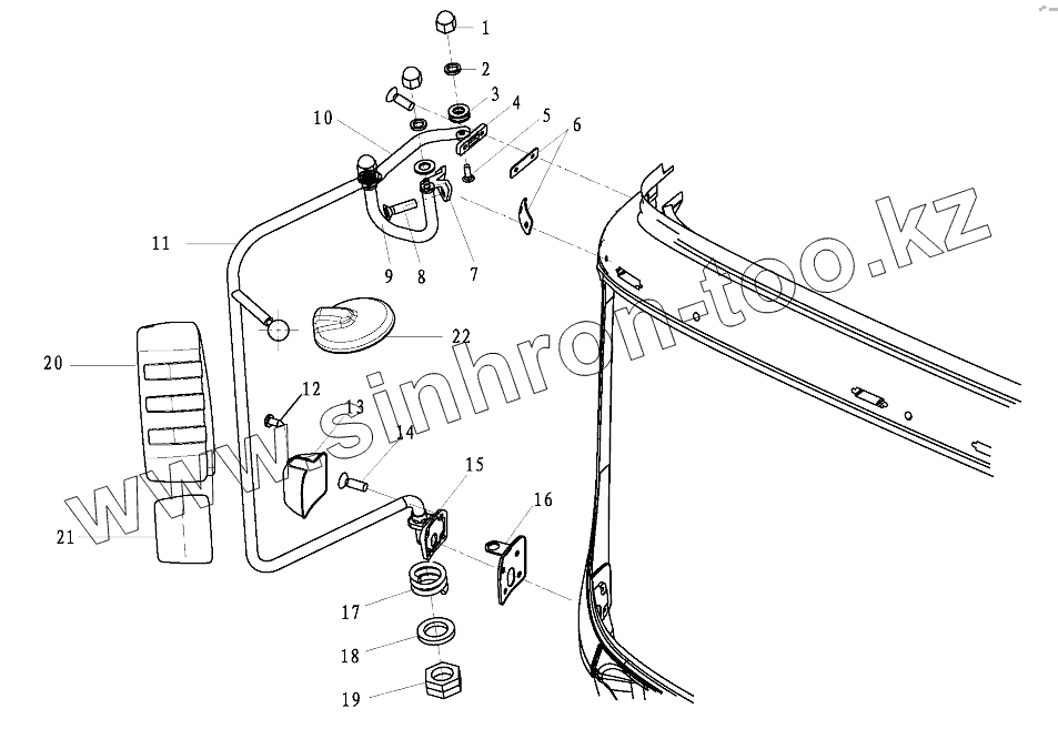 Каталог запасных частей к технике: Shaanxi Shacman SX3256DR384 (F3000). REAR VIEW MIRROR RIGHT BRACKET