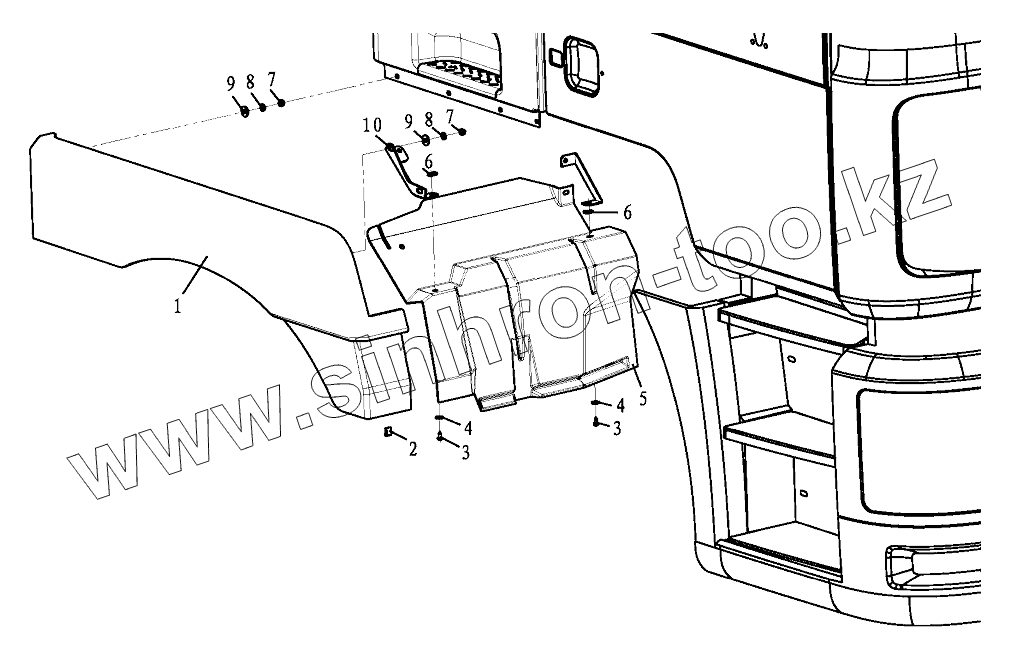 Каталог запасных частей к технике: Shaanxi Shacman SX3256DR384 (F3000). RIGHT FENDER