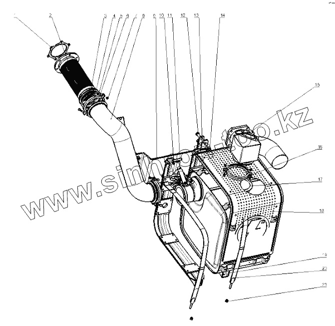 Каталог запасных частей к технике: Shaanxi Shacman SX3256DT384. EXHAUSTING AND MUFFLER