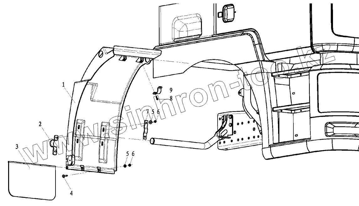 Каталог запасных частей к технике: Shaanxi Shacman SX3256DT384. FENDER LEFT BEHIND CAB
