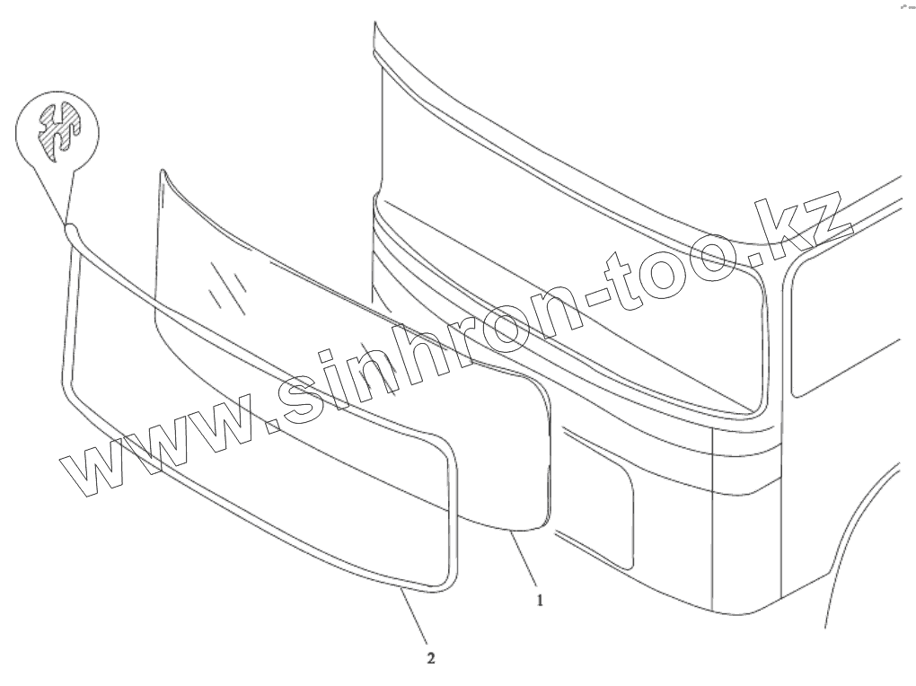 Каталог запасных частей к технике: Shaanxi Shacman SX3256DT384. ЛОБОВОЕ СТЕКЛО