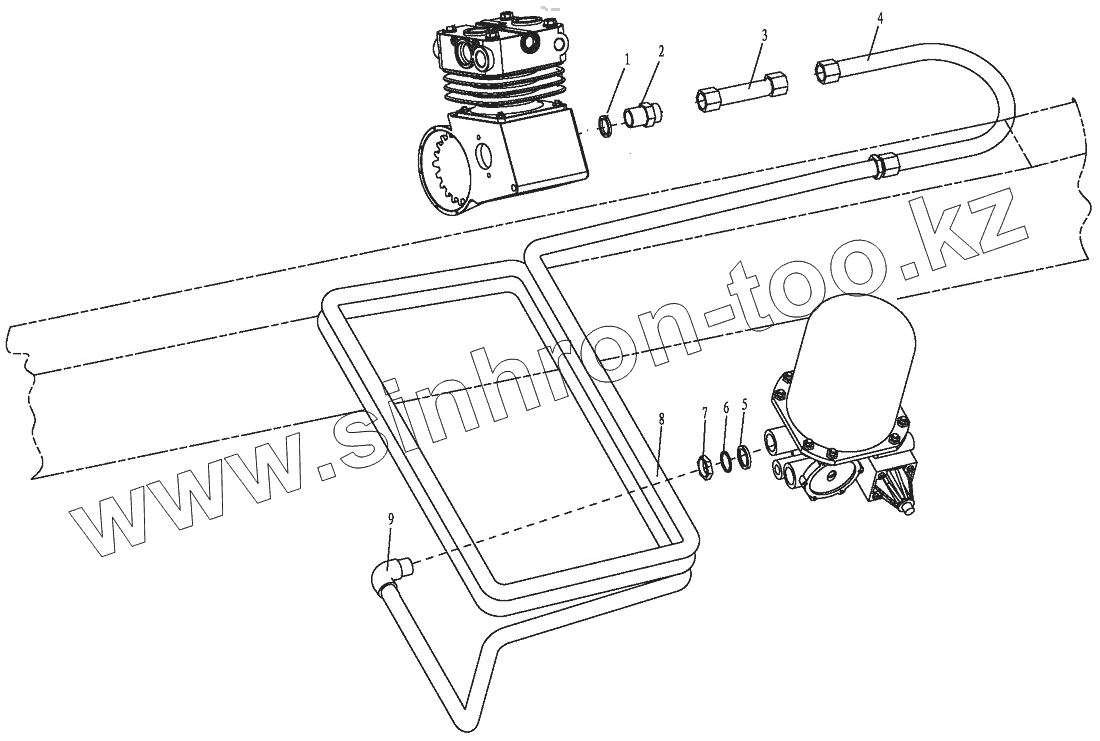 Каталог запасных частей к технике: Shaanxi Shacman SX3258DR384—F2000. Air compressor outer line