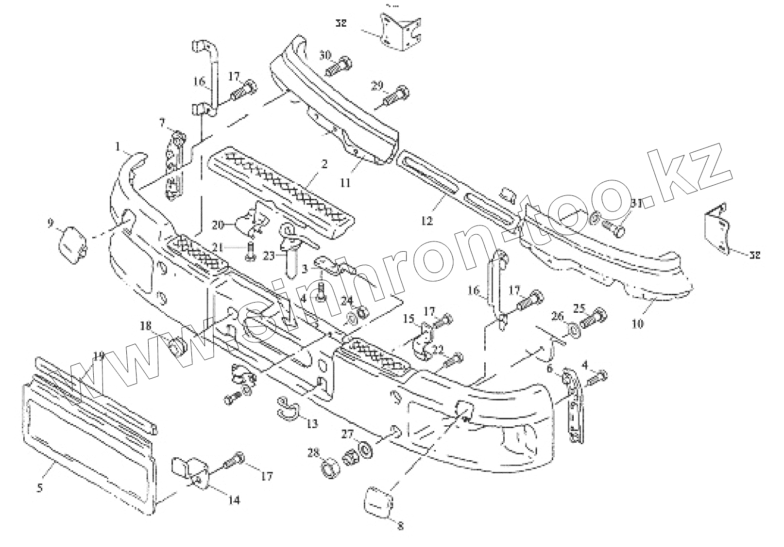 Каталог запасных частей к технике: Shaanxi Shacman SX3258DR384—F2000. Bumper and front bracket