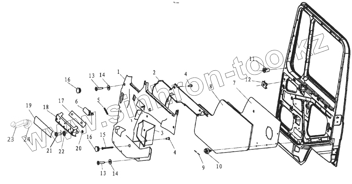 Каталог запасных частей к технике: Shaanxi Shacman SX3258DR384—F2000. Door covering right