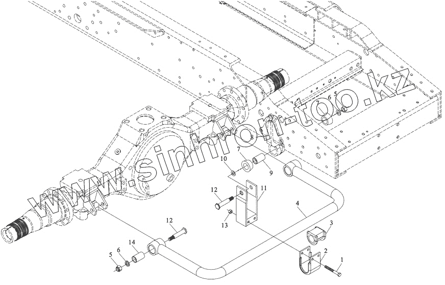 Каталог запасных частей к технике: Shaanxi Shacman SX3258DR384—F2000. Rear stabilizer assy