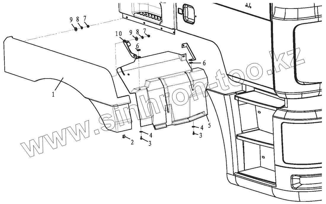 Каталог запасных частей к технике: Shaanxi Shacman SX3258DR384—F2000. Right Fender
