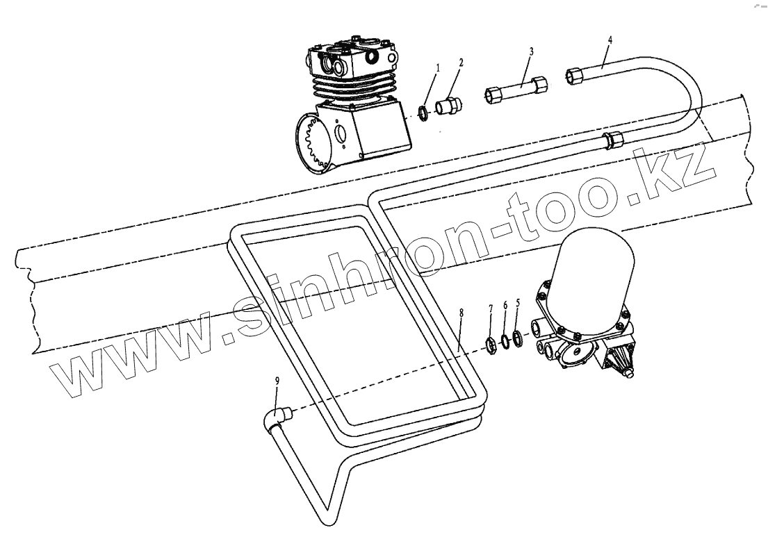 Каталог запасных частей к технике: Shaanxi Shacman SX3316DR366 (F2000). AIR COMPESSOR OUTER LINE