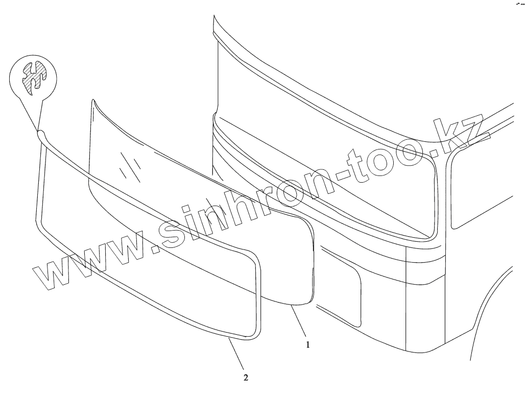 Каталог запасных частей к технике: Shaanxi Shacman SX3316DR366 (F2000). FRONT WINDSHIELD ASSEMBLY