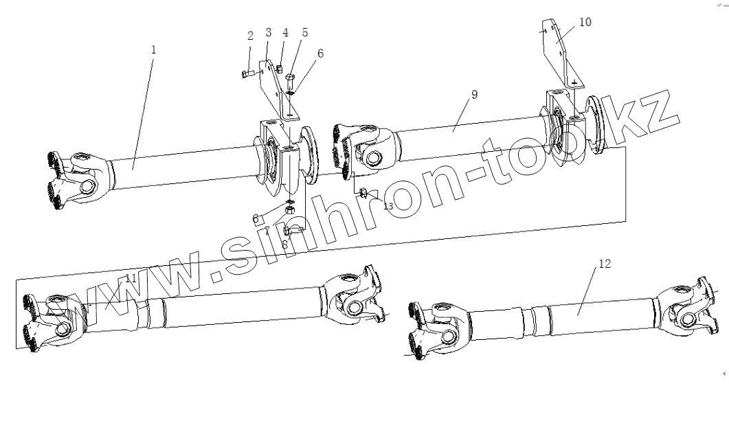 Каталог запасных частей к технике: Shaanxi Shacman SX3316DR366 (F2000). PROPELLER SHAFT SYSTEM