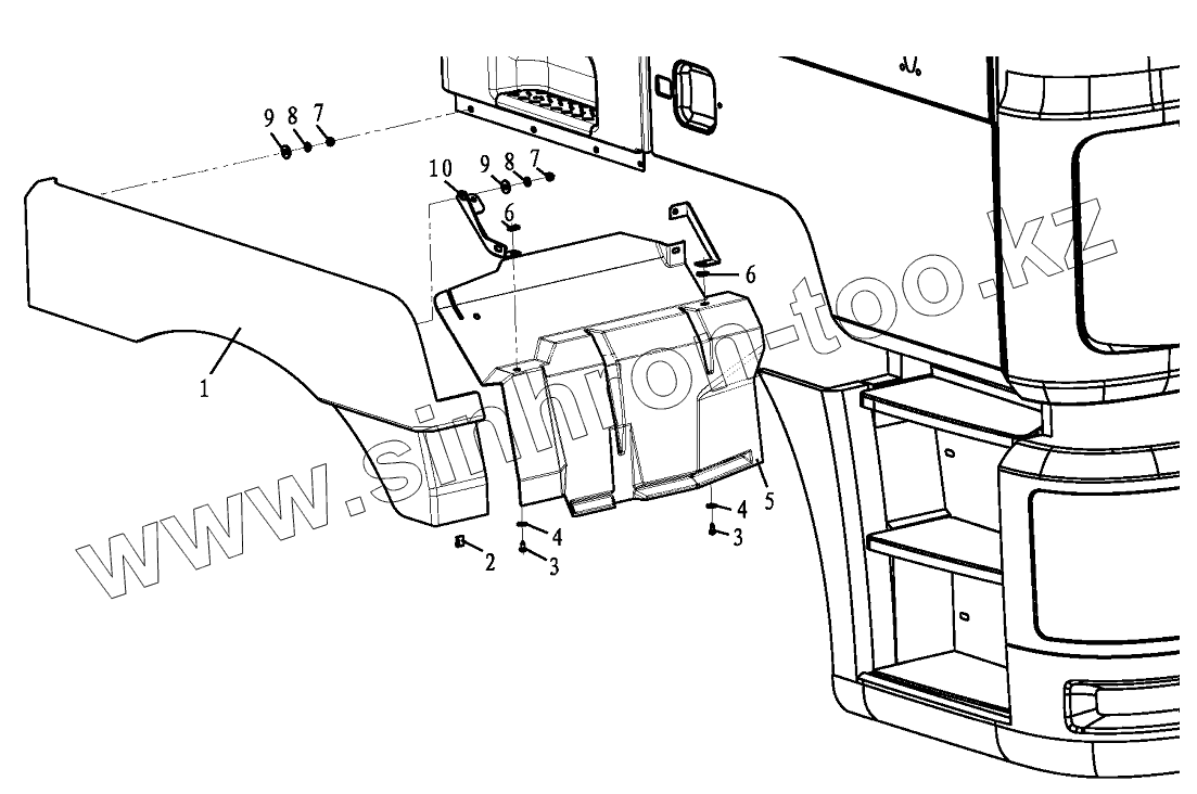 Каталог запасных частей к технике: Shaanxi Shacman SX3316DR366 (F2000). RIGHT FENDER