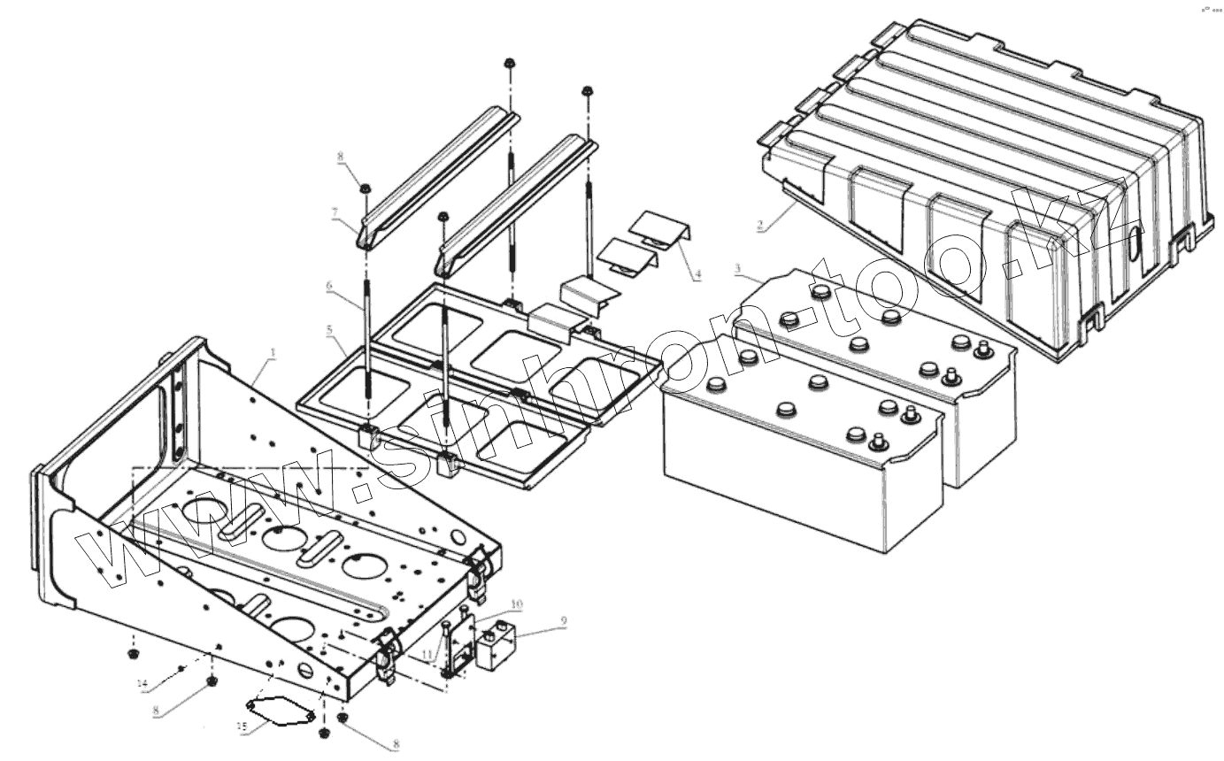 Каталог запасных частей к технике: Shaanxi Shacman SX3316DT426C. BATTERY BOX