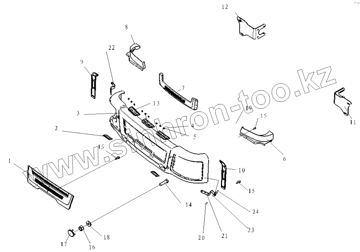 Каталог запасных частей к технике: Shaanxi Shacman SX3316DT426C. BUMPER AND FRONT BRACKET