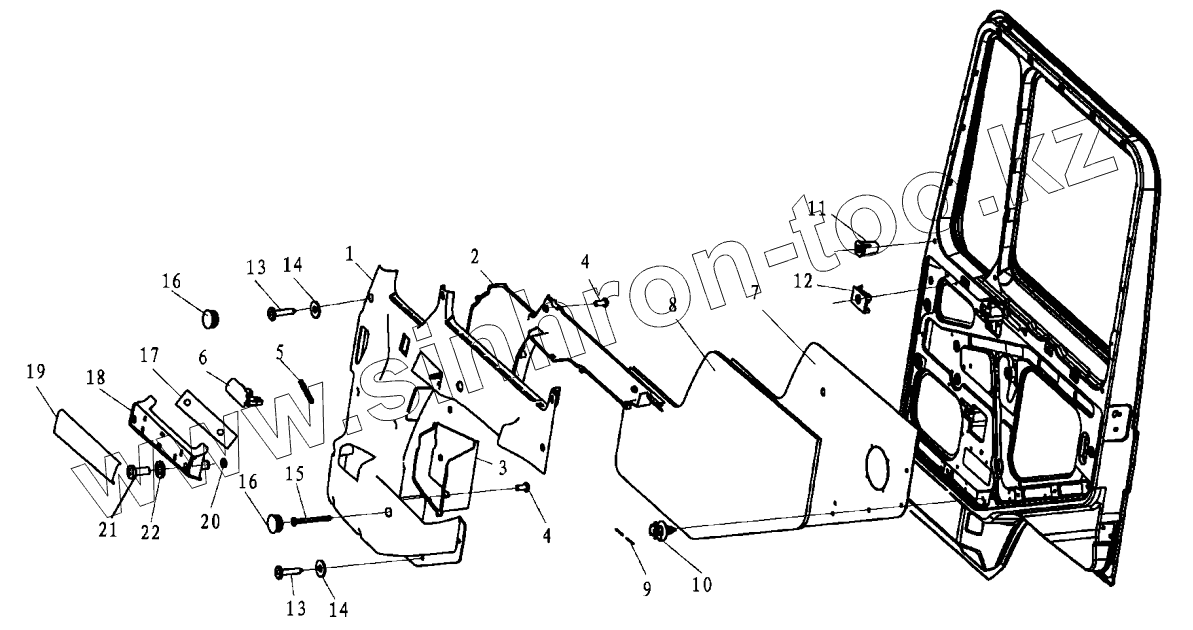 Каталог запасных частей к технике: Shaanxi Shacman SX3316DT426C. DOOR COVERING RIGHT