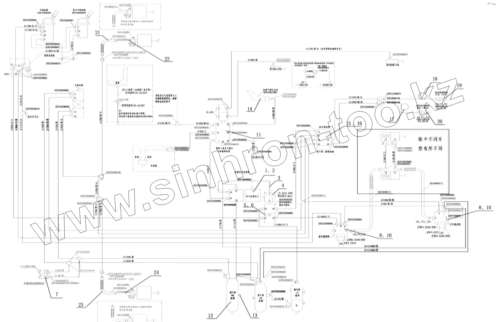 Каталог запасных частей к технике: Shaanxi Shacman SX3316DT426C. DOUBAL CIRCUIT BRAKE SYSTEM в…Ў