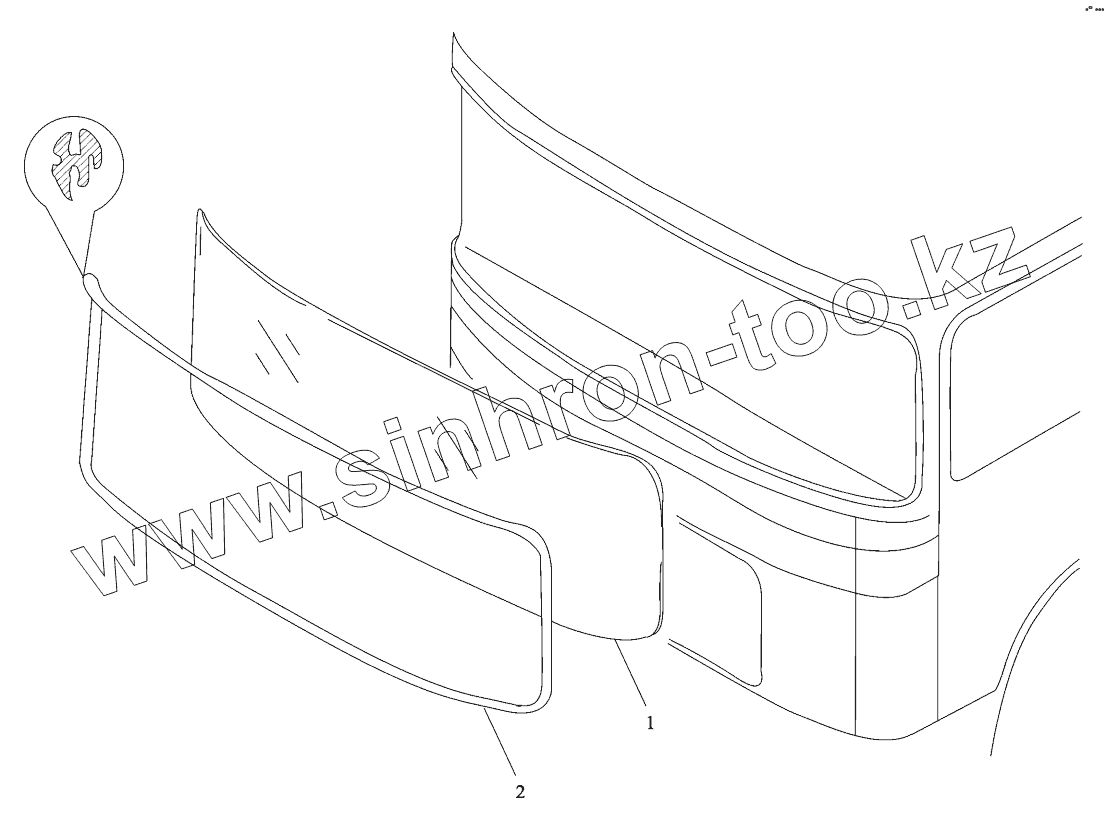 Каталог запасных частей к технике: Shaanxi Shacman SX3316DT426C. FRONT WINDSHIELD GLASS ASSEMBLY