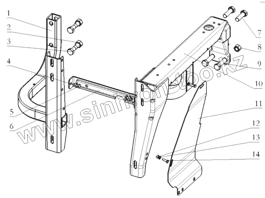 Каталог запасных частей к технике: Shaanxi Shacman SX3316DT426C. LEFT FOOT PANEL BRACKET