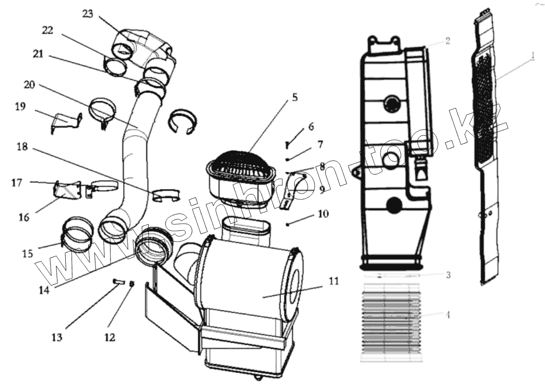 Каталог запасных частей к технике: Shaanxi Shacman SX3316HT406C. AIR CLEANING DEVICE