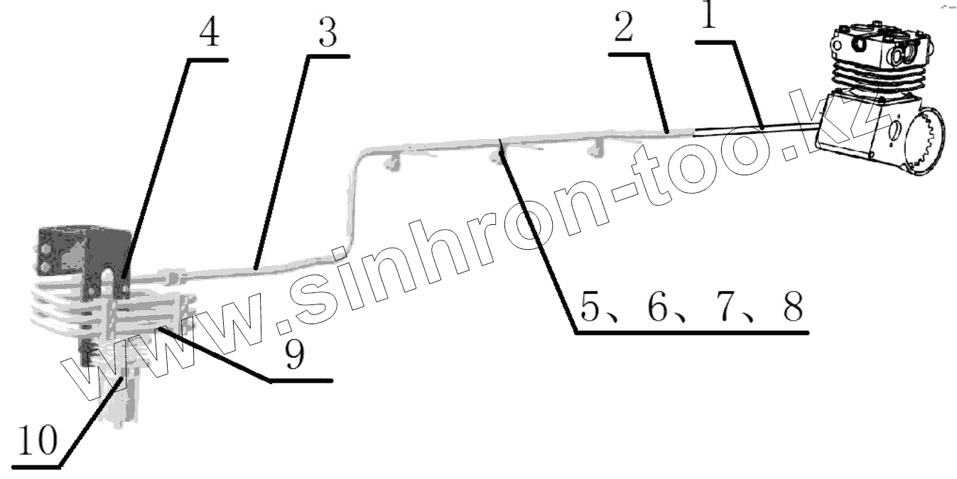 Каталог запасных частей к технике: Shaanxi Shacman SX3316HT406C. AIR COMPRESSOR PIPELINE