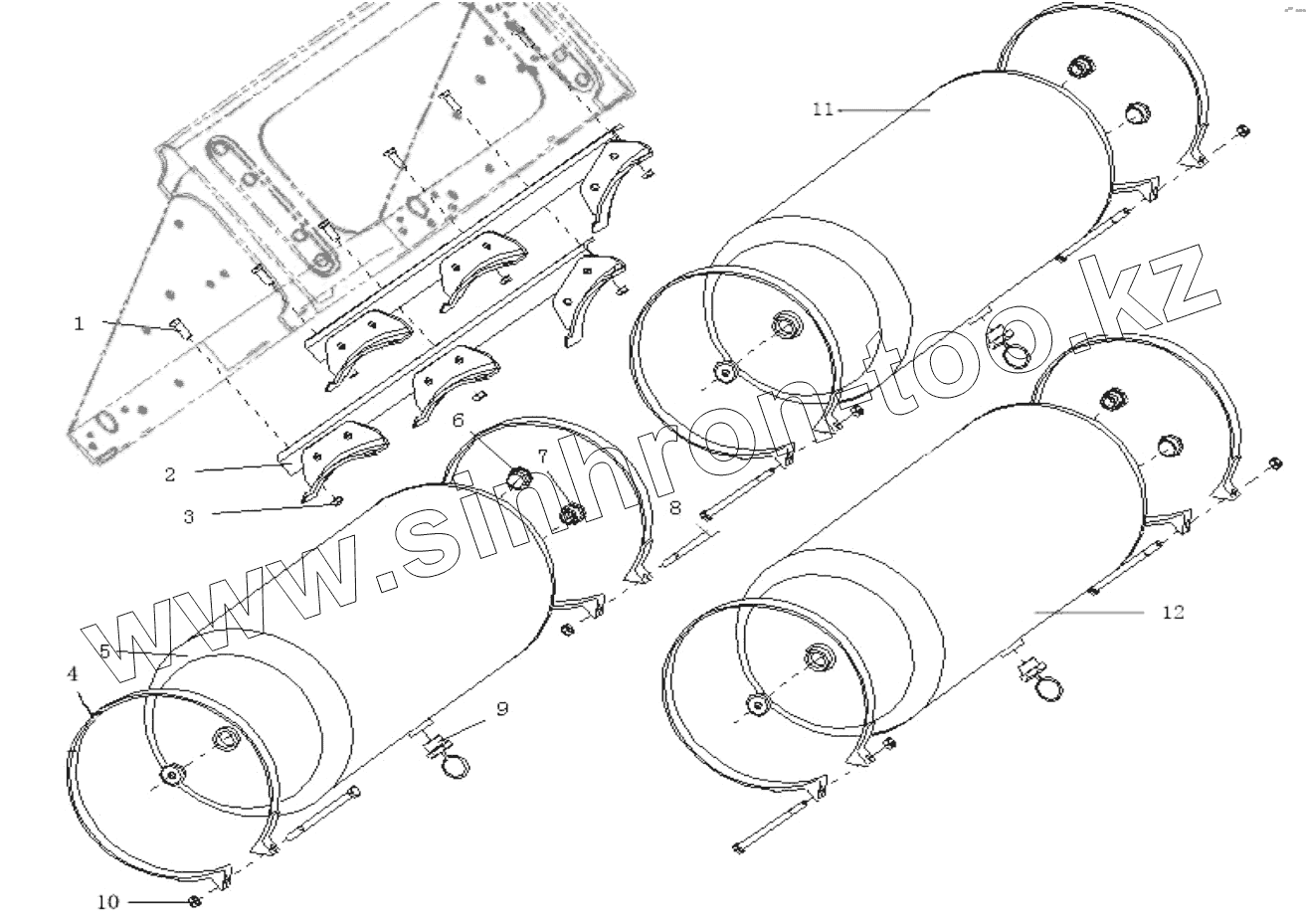 Каталог запасных частей к технике: Shaanxi Shacman SX3316HT406C. AIR TANK FIXING (в…Ў)