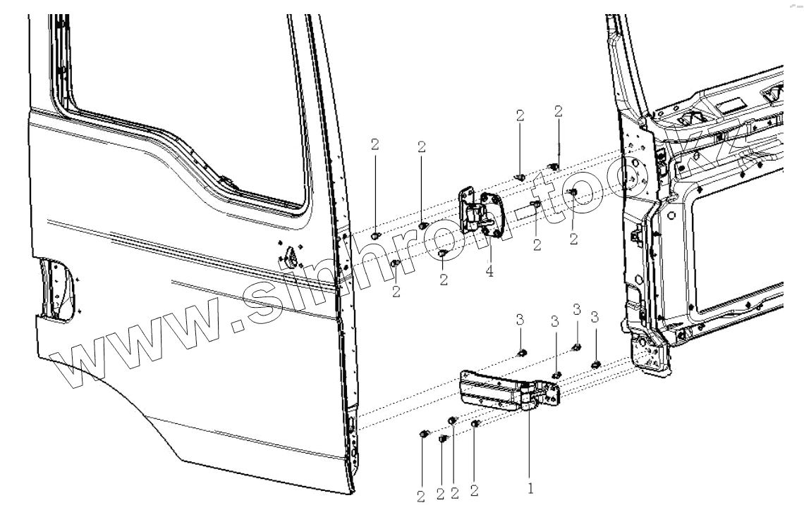 Каталог запасных частей к технике: Shaanxi Shacman SX3316HT406C. RIGHT DOOR HING
