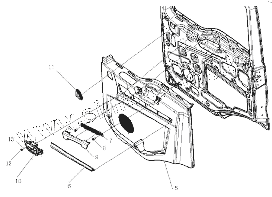 Каталог запасных частей к технике: Shaanxi Shacman SX3316HT406C. RIGHT DOOR INNER PANEL ASSEMBLY