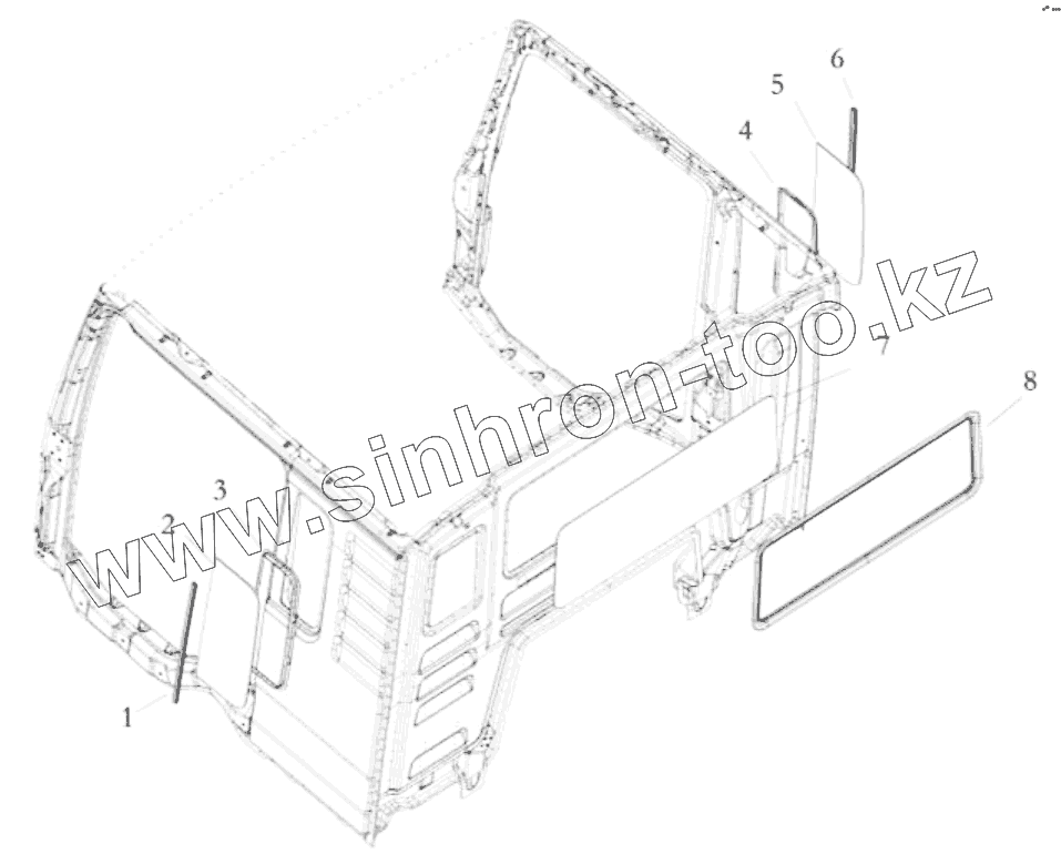 Каталог запасных частей к технике: Shaanxi Shacman SX3316HT406C. SIDE-WINDOW AND REAR-WINDOW