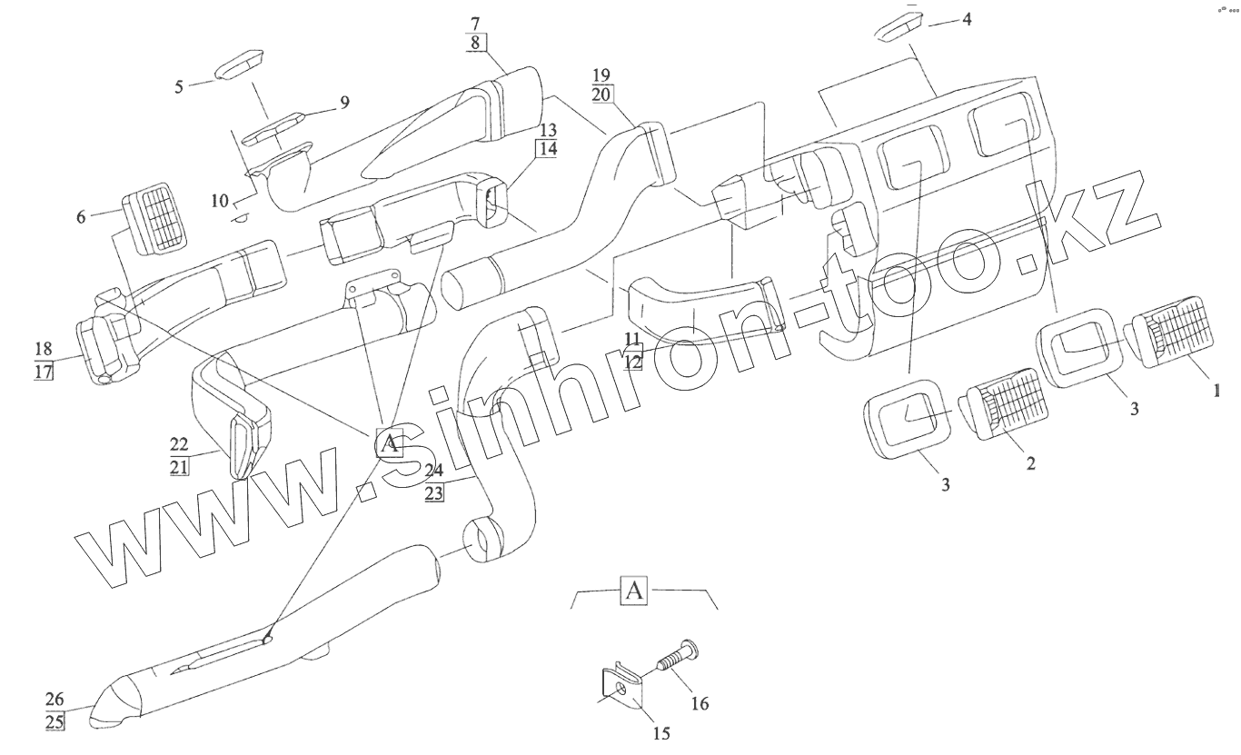 Каталог запасных частей к технике: Shaanxi Shacman SX4255DV385. AIR DUCT