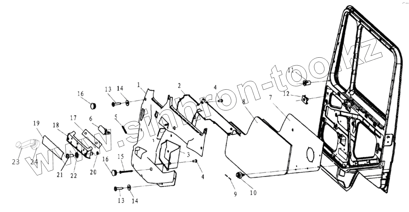 Каталог запасных частей к технике: Shaanxi Shacman SX4255DV385. DOOR COVERING RIGHT