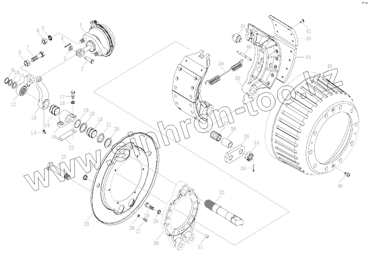 Каталог запасных частей к технике: Shaanxi Shacman SX4255DV385. FRONT AXLE BRAKING