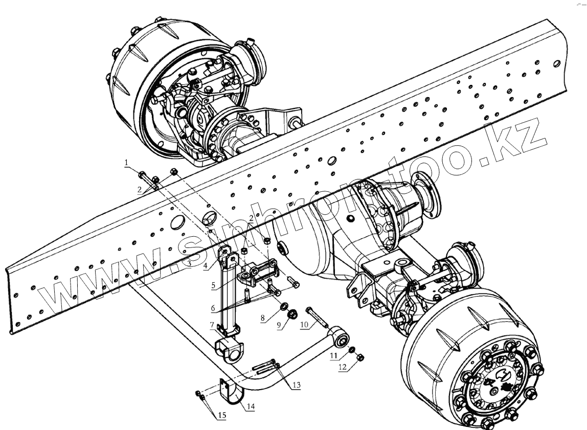 Каталог запасных частей к технике: Shaanxi Shacman SX4255DV385. FRONT STABILIZER ASSY (DC93259680107)