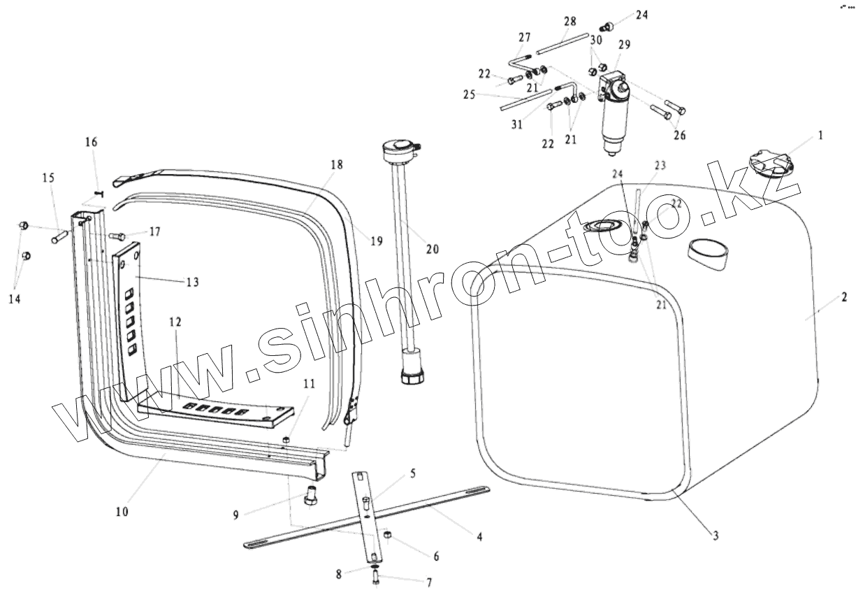 Каталог запасных частей к технике: Shaanxi Shacman SX4255DV385. FUEL TANK ASSEMBLY 380L