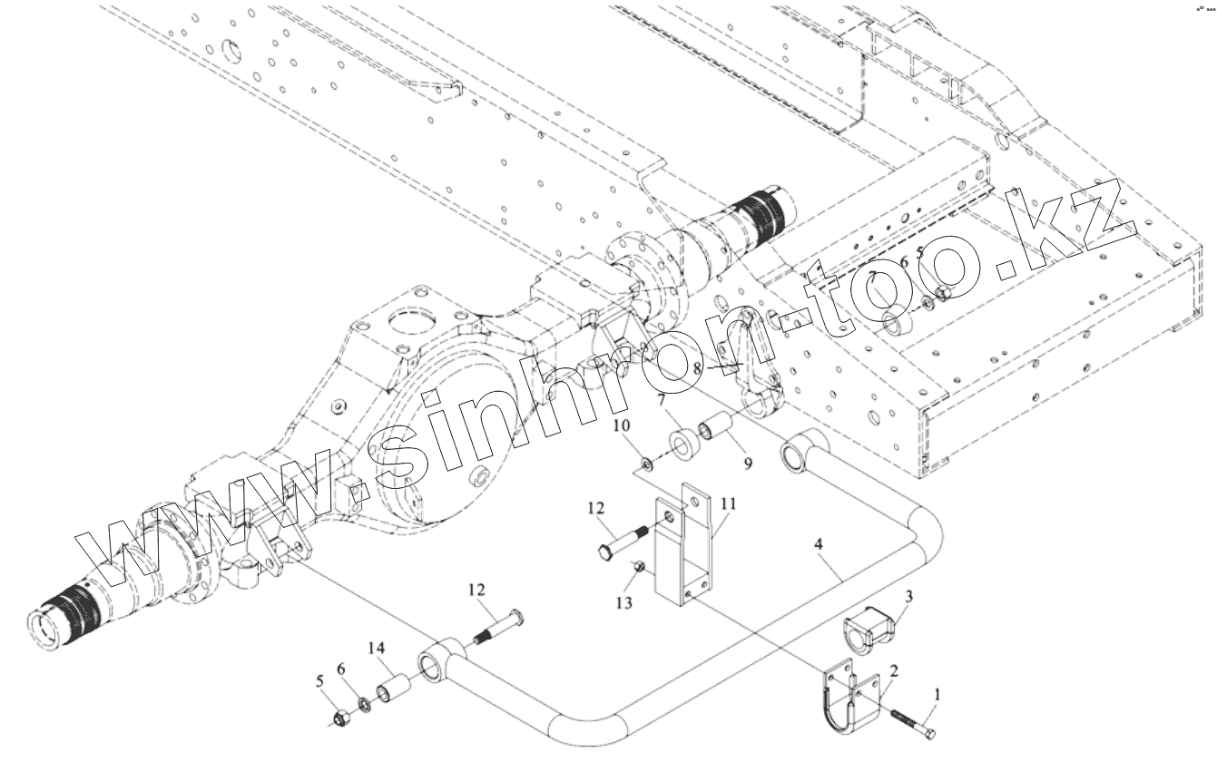 Каталог запасных частей к технике: Shaanxi Shacman SX4255DV385. REAR STABILIZER ASSY (DC93259680107)