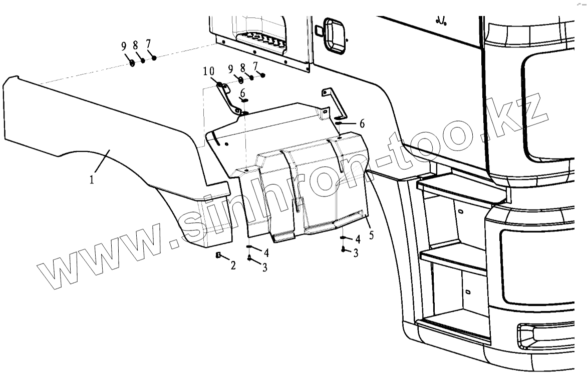 Каталог запасных частей к технике: Shaanxi Shacman SX4255DV385. RIGHT FENDER