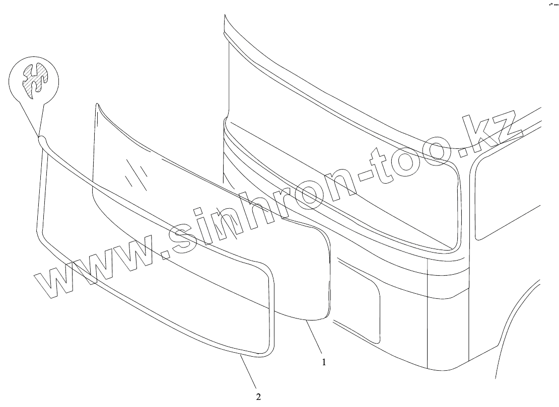 Каталог запасных частей к технике: Shaanxi Shacman SX4255DV385. WINDSHIELD ASSEMBLY