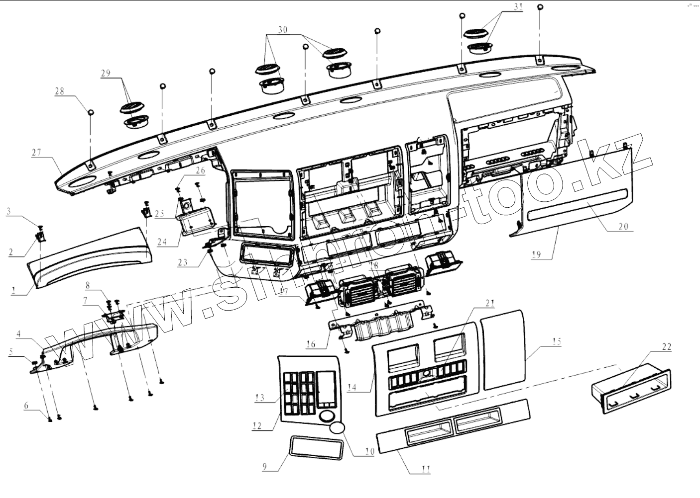 Каталог запасных частей к технике: Shaanxi Shacman SX4256NT324. DASHBOARD (10 INTERIOR)